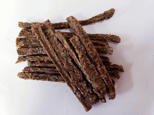 牛肉の中でも脂身の少ない牛ハラミ肉をスティック状に成型しました。