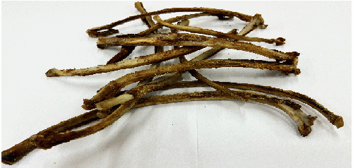 猪のあばら骨を1本1本丁寧にトリミングし、加熱処理をして乾燥させています。