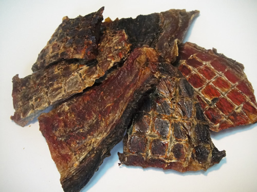 牛肉の中でも脂身の少ない牛ハラミ肉をスティック状に成型しました。